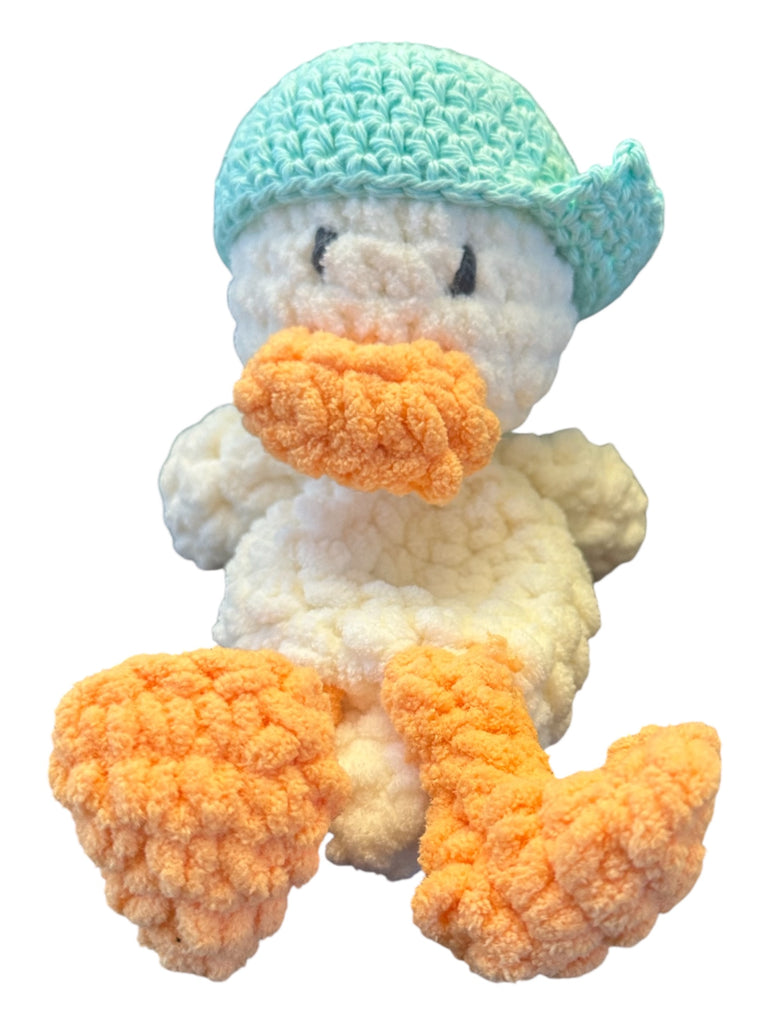 These hand-crocheted ducks are bursting with personality and crafted with care. Each one features plump, rounded bodies with classic duck detailing—webbed feet, tiny wings, and an adorable beak. The texture of the yarn gives them a cozy feel, making them perfect as a gift, collectible, or whimsical decor piece. Whether perched on a shelf or tucked into a child’s arms, these ducks bring a touch of handmade warmth to any setting.