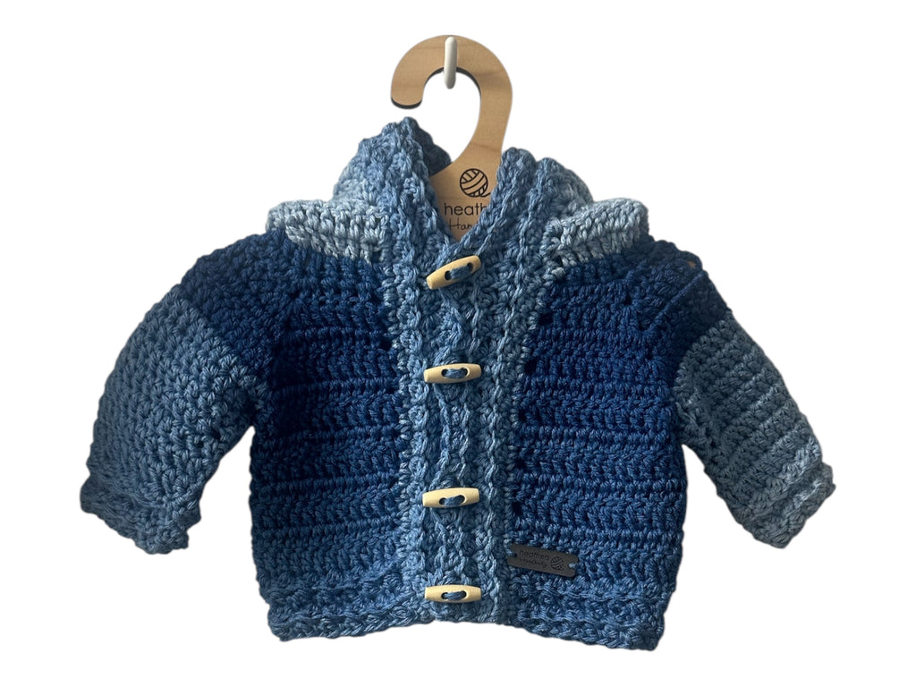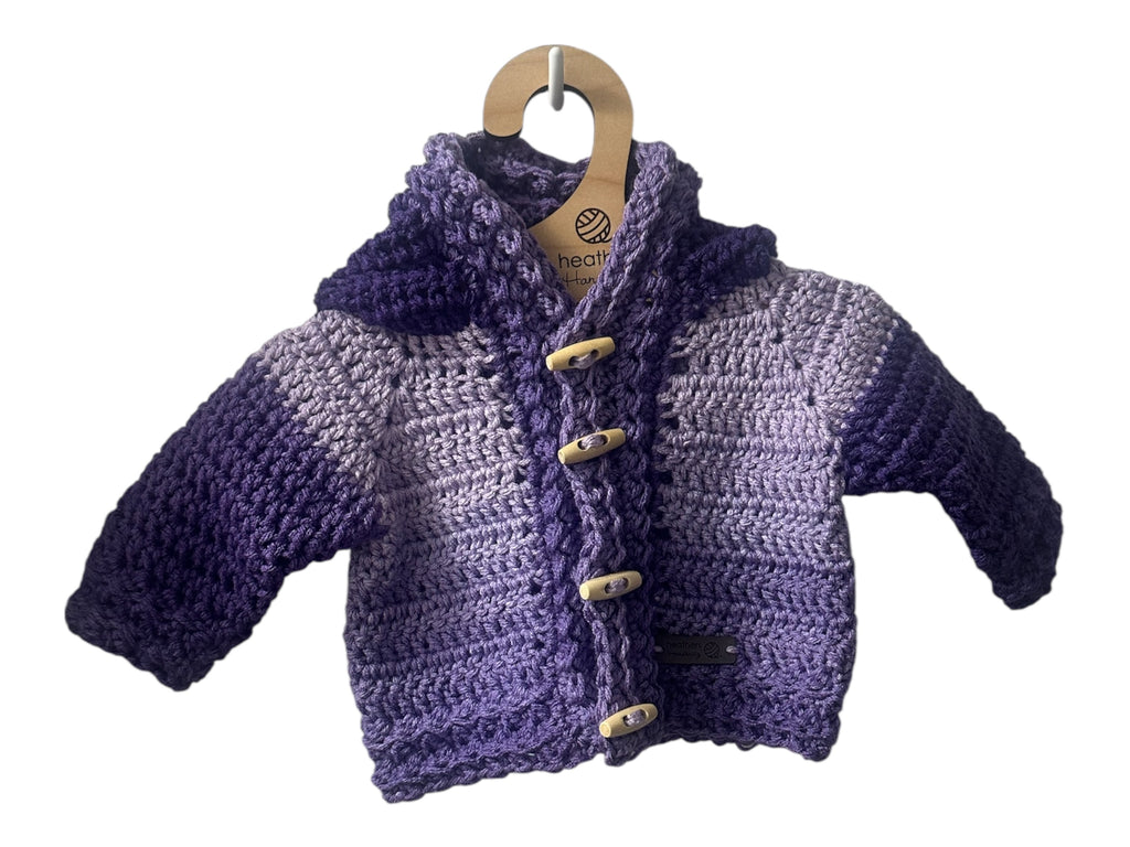 Super soft, handmade crocheted Hooded Cardigan Sweater for babies—crafted with care to keep little ones snug and stylish